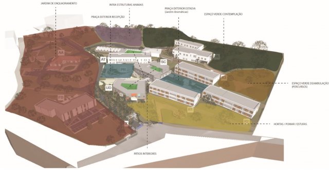 Na proximidade, a proposta de talhões para cultivo e de um pomar a ser cuidado e gerido pelos utentes/residentes.